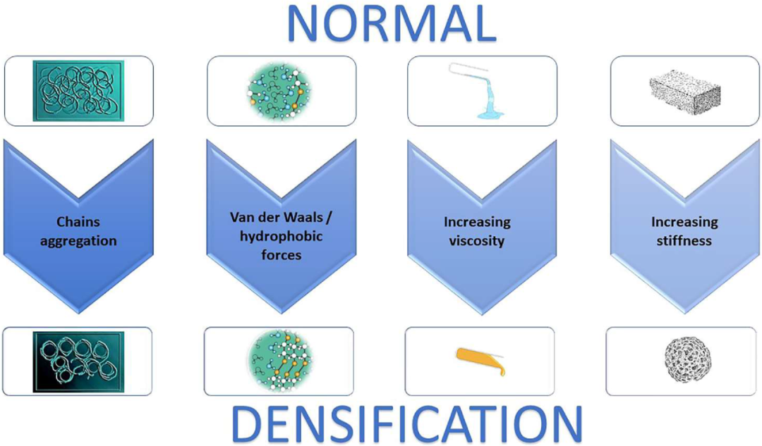 (圖1 致密化的過程。透明質(zhì)酸濃度增加。該過程產(chǎn)生大分子結(jié)構(gòu),增加細(xì)胞外基質(zhì)的粘度,從而增加組織硬度)