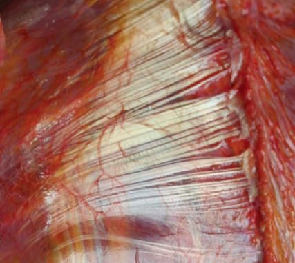 研究發(fā)現(xiàn),不同部位的筋膜可能在形態(tài)上互相連接,從而傳遞張力。因此,筋膜組織的結(jié)構(gòu)特征,如厚度、柔韌性和彈性,可能會影響疼痛、運動范圍和組織功能。