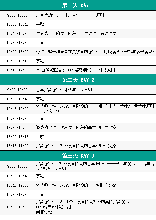 1. DNS 臨床課程專門為醫(yī)生、治療師設(shè)置,課程內(nèi)容更多含有臨床治療、個體生長發(fā)育、嬰兒原始反射及病理知識等。