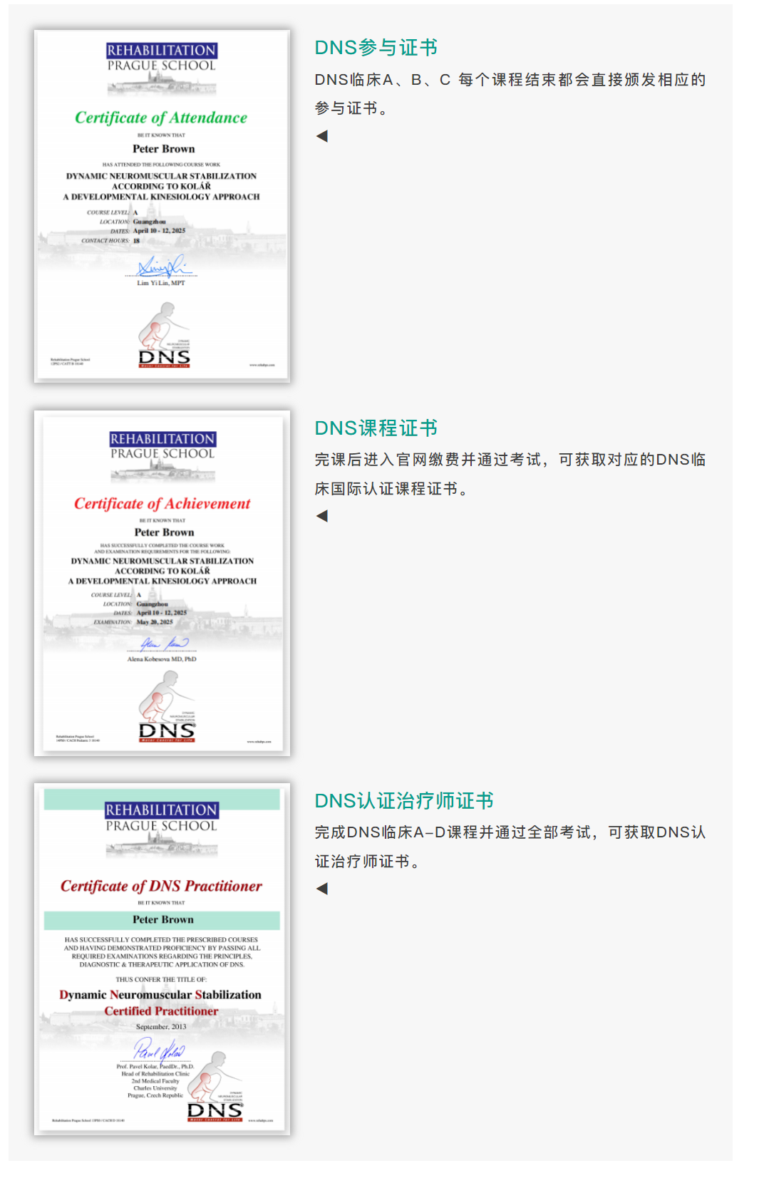 4. DNS臨床證書分為:參與證書——課程證書——認證治療師證書(如下)。