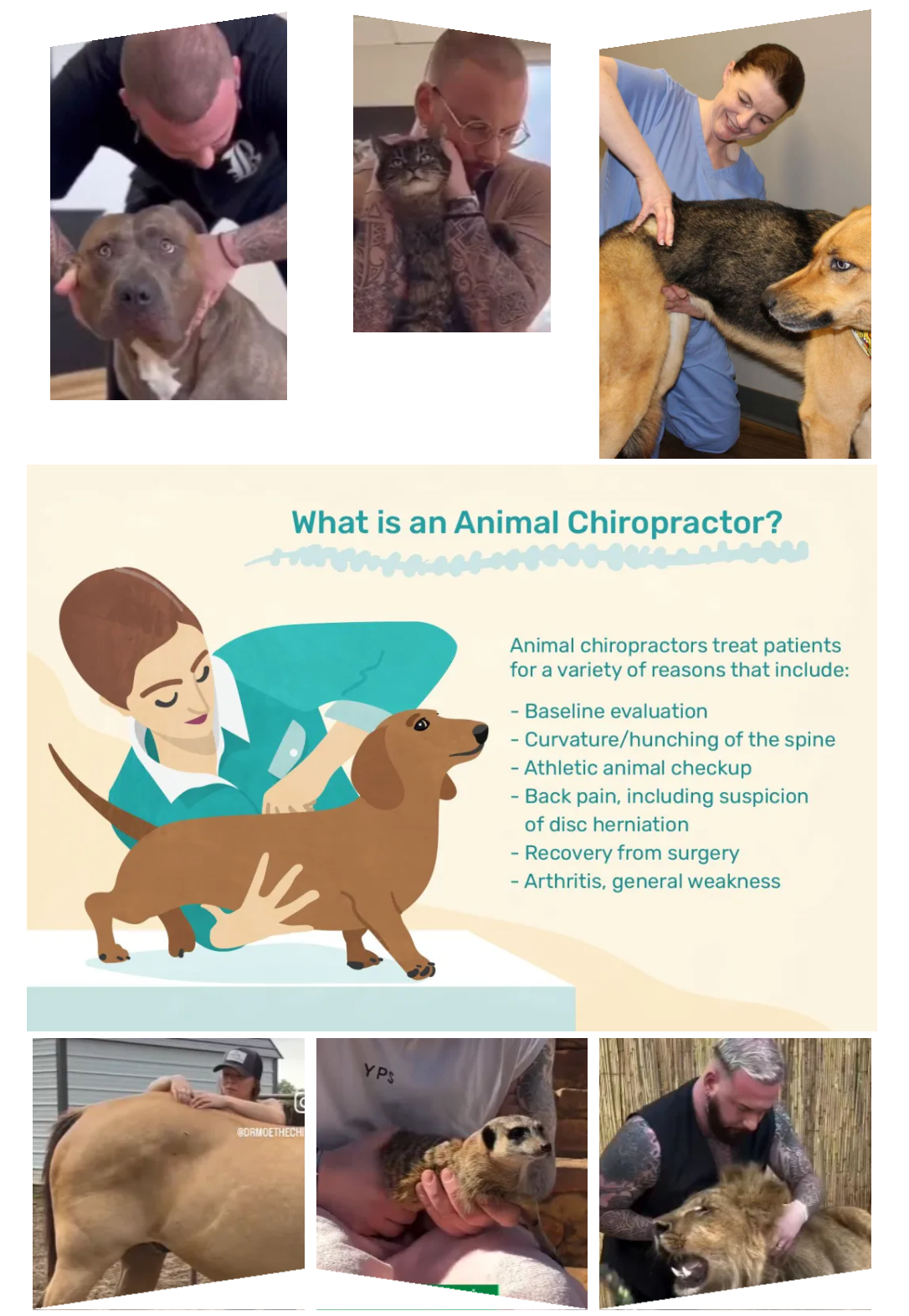 隨著現(xiàn)代醫(yī)療技術(shù)應(yīng)用的廣泛延伸,動(dòng)物治療,尤在歐美地區(qū)盛行。他們將一些手法技術(shù),如意大利筋膜手法、美式整脊等,適用于各類動(dòng)物身上,比如摔骨折的貓狗、高強(qiáng)度奔襲的賽馬,甚至是獅子、蛇、熊...這項(xiàng)技術(shù)以致力于獸醫(yī)學(xué)發(fā)展和提高動(dòng)物生命質(zhì)量。